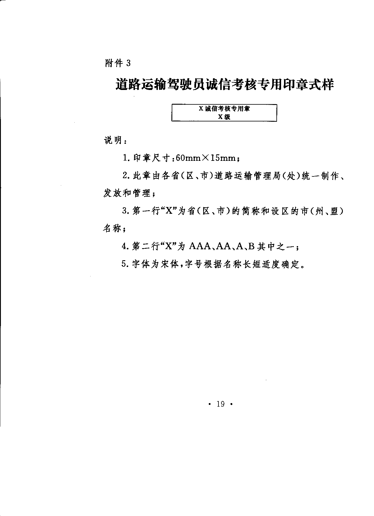 第二十條 設(shè)區(qū)的市級(jí)道路運(yùn)輸管理機(jī)構(gòu)在收到《道路運(yùn)輸駕駛員誠信考核表》后,應(yīng)當(dāng)對(duì)道路運(yùn)輸駕駛員從業(yè)資格證件上的違章和計(jì)分記錄、道路運(yùn)輸駕駛員數(shù)據(jù)庫中的記錄、《道路運(yùn)輸駕駛員誠信考核表》及相關(guān)證明材料進(jìn)行核實(shí)和計(jì)分匯總,并在其從業(yè)資格證件和《道路運(yùn)輸駕駛員誠信考核表》的“誠信考核記錄”欄中標(biāo)注誠信考核起止時(shí)間,簽注誠信考核等級(jí),加蓋道路運(yùn)輸駕駛員誠信考核專用印章(式樣見附件3)。
