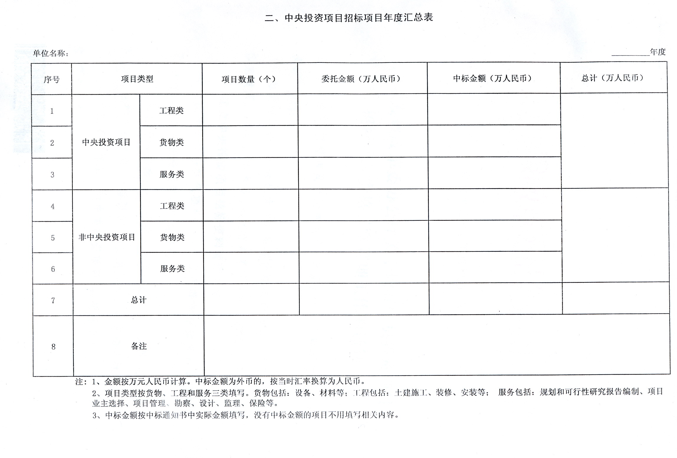 二、中央投資項(xiàng)目招標(biāo)項(xiàng)目年度匯總表