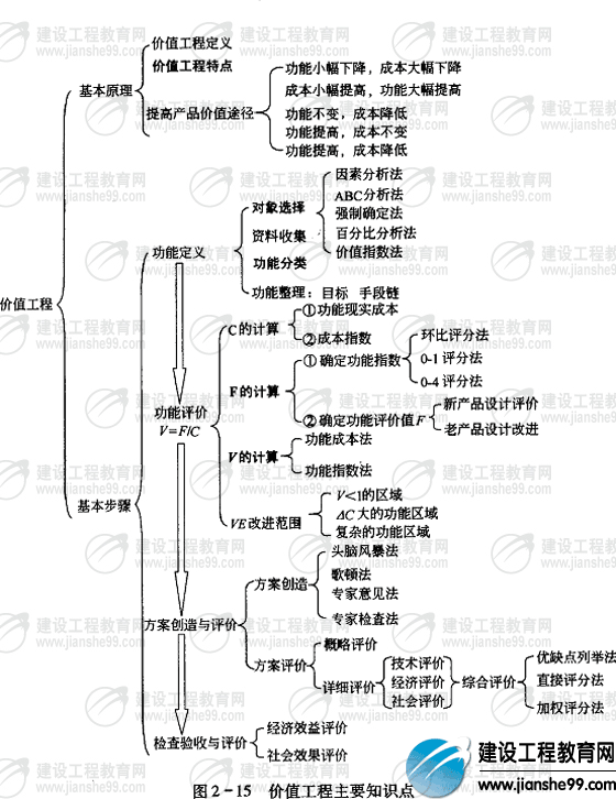 價(jià)值工程也是歷年考試的重點(diǎn)之一,價(jià)值工程的特點(diǎn),尤其是前三個(gè)特點(diǎn)要注意理解,一般易出綜合題;提高產(chǎn)品價(jià)值的五個(gè)途徑雖然簡(jiǎn)單,但是是實(shí)施價(jià)值工程的主要思路,與后面的價(jià)值分析聯(lián)系也比較緊密,因此要注意理解;對(duì)象選擇一方面要記住五種方法名稱,另一方面,對(duì)這五種方法的含義也要領(lǐng)會(huì);價(jià)值工程以功能分析為核心,因此要了解功能有哪些類型,價(jià)值工程研究的是哪種功能;功能的計(jì)算包括打分方法和功能評(píng)價(jià)值的確定,也是考核的重點(diǎn),可以通過(guò)練習(xí)掌握這部分內(nèi)容;價(jià)值計(jì)算比較簡(jiǎn)單,關(guān)鍵是對(duì)計(jì)算結(jié)果的分析,經(jīng)常會(huì)出多選題,在此要結(jié)合提高價(jià)值的途徑理解這部分內(nèi)容。
