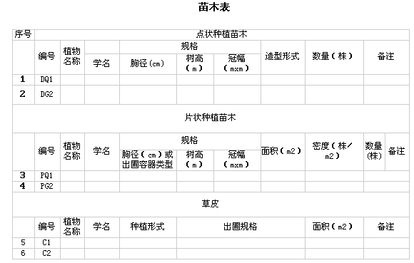 、 對苗木表的內(nèi)容和格式?jīng)]有統(tǒng)一規(guī)定。