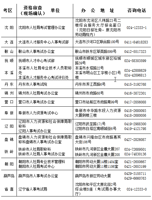(三)報(bào)名時(shí),我省報(bào)考人員請(qǐng)選擇“遼寧省”考區(qū)。駐沈的中、省直單位報(bào)考人員應(yīng)選擇“省直”審核點(diǎn),其他報(bào)考人員均按屬地化管理原則,選擇單位所在市為報(bào)名資格審核點(diǎn)。報(bào)名有關(guān)事宜咨詢(xún)電話(huà)詳見(jiàn)附件2。