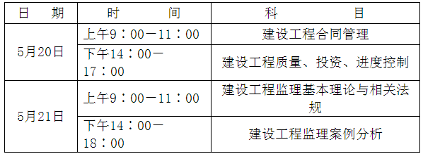 考試定于5月20日至21日舉行,考試科目和具體時間為: