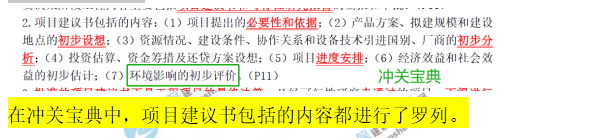 【解析】項目建議書的內(nèi)容視工程項目不同而有繁有簡,但一般應包括以下幾方面內(nèi)容:(1)項目提出的必要性和依據(jù);(2)產(chǎn)品方案、擬建規(guī)模和建設(shè)地點的初步設(shè)想;(3)資源情況、建設(shè)條件、協(xié)作關(guān)系和設(shè)備技術(shù)引進國別、廠商的初步分析;(4)投資估算、資金籌措及還貸方案設(shè)想;(5)項目進度安排;(6)經(jīng)濟效益和社會效益的初步估計;(7)環(huán)境影響的初步評價。參見教材P11。
