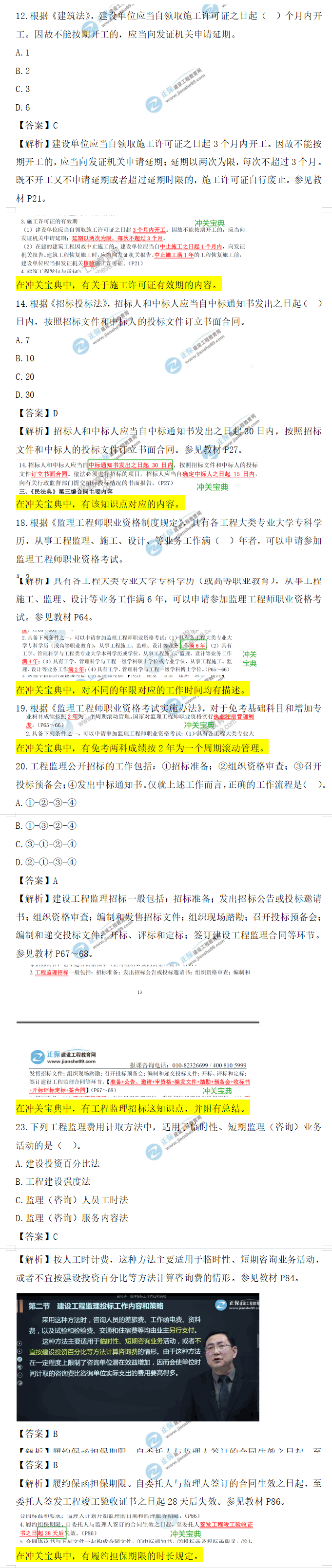 在沖關(guān)寶典中,對于監(jiān)理服務(wù)期限有重點標注。
