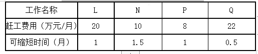 ?、跮、N、Q仍為關鍵工作,選趕工費率較小的工作L進行壓縮;
