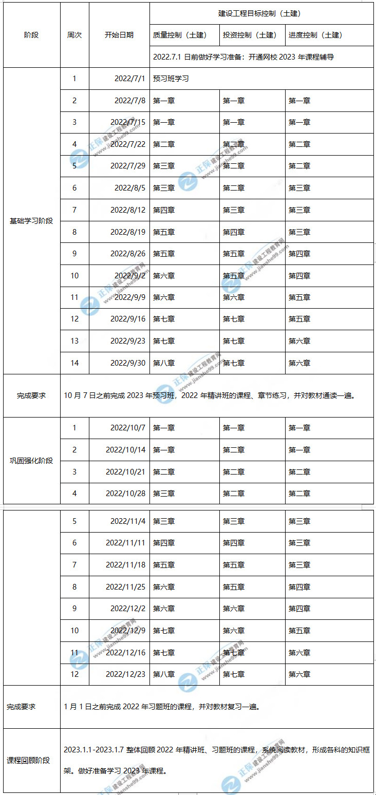 2023年監(jiān)理工程師土建控制學(xué)習(xí)計(jì)劃時(shí)間表