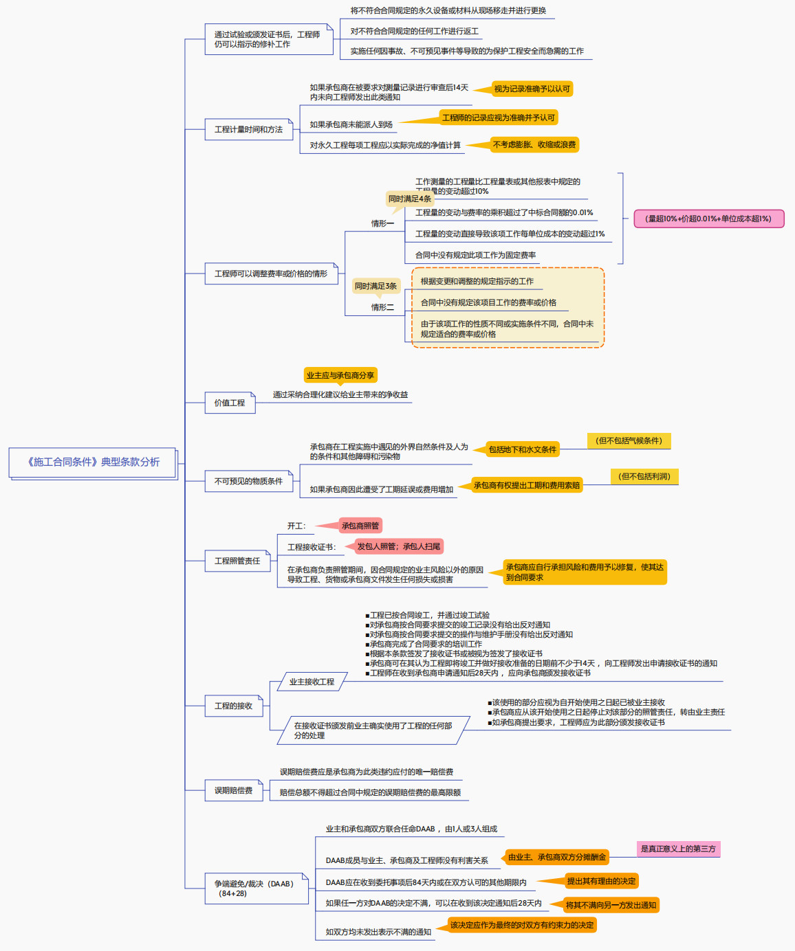 監(jiān)理工程師合同管理《施工合同條件》典型條款分析思維導圖