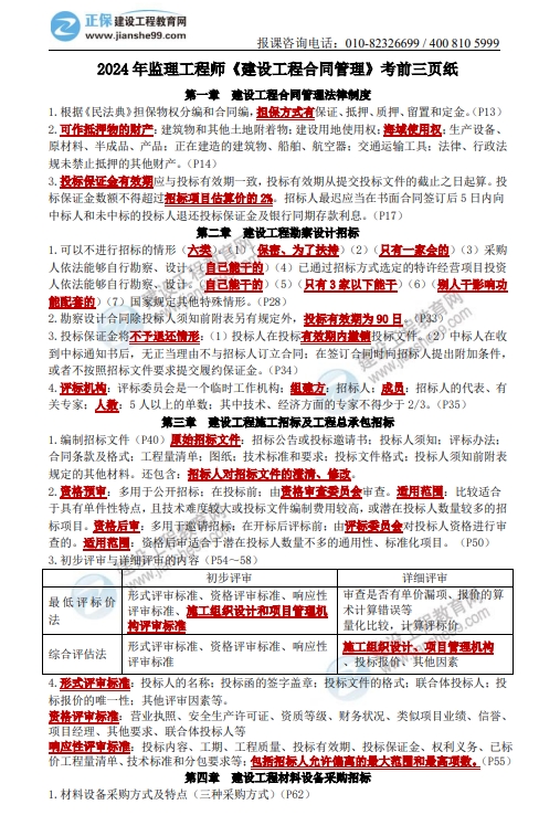 2024年監(jiān)理工程師合同管理考前三頁(yè)紙