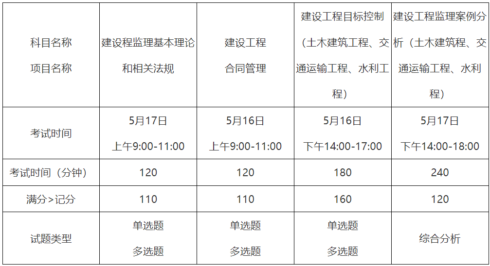2026年度監(jiān)理工程師職業(yè)資格考試基礎(chǔ)科目、土木建筑工程專業(yè)科目使用2026年版《全國監(jiān)理工程師職業(yè)資格考試大綱》;交通運(yùn)輸工程專業(yè)科目使用《全國監(jiān)理工程師職業(yè)資格考試交通運(yùn)輸工程專業(yè)科目考試大綱(2024年修訂版)》;水利工程專業(yè)科目使用《全國監(jiān)理工程師職業(yè)資格考試水利工程專業(yè)科目考試大綱(2023年修訂版)》。全國監(jiān)理工程師職業(yè)資格考試基礎(chǔ)科目和水利工程專業(yè)科目考試大綱見附件3。