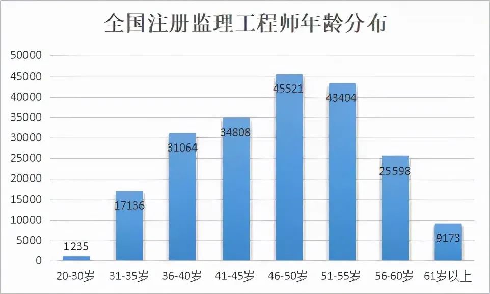 通過監(jiān)理工程師人數最多的年齡階段為46歲~50歲,共計45521人,其中1968年出生的通過人數最多,為10515人。