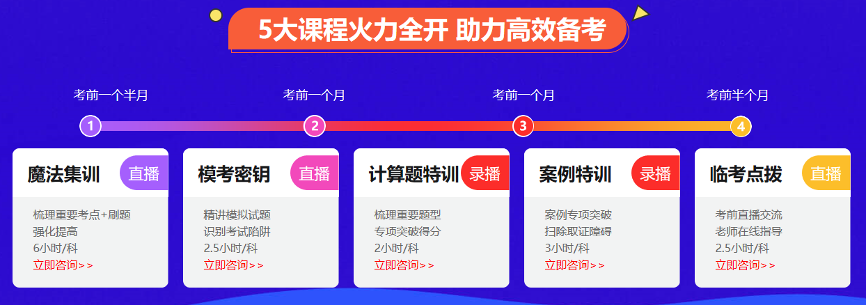 考前的五大課程非常值得一看,全部為直播課,如果錯過直播課還會提供錄播,為你掃除學(xué)習(xí)難點,比如計算題案例題,網(wǎng)校會單拎出來給大家詳細(xì)的講解,為大家量身打造最有效的沖刺套餐,不僅有課程,資料也是滿滿當(dāng)當(dāng)!