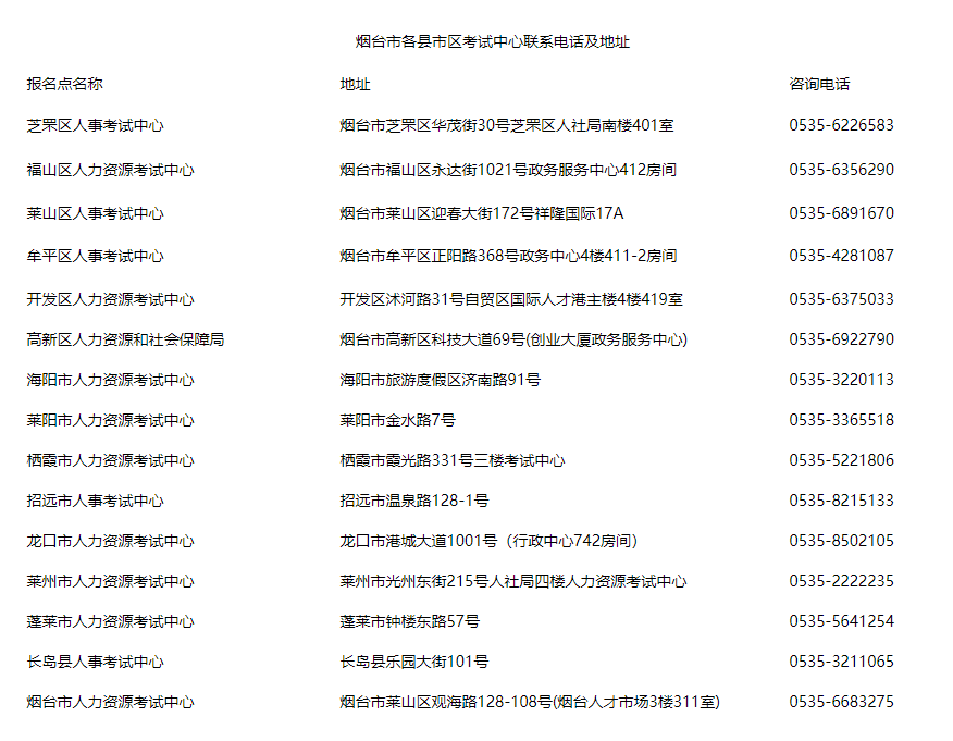 各縣市區(qū)人事考試中心、市直及駐煙有關(guān)單位:
