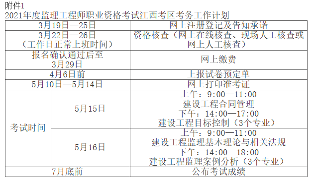 附件:1.2021年度監(jiān)理工程師職業(yè)資格考試江西考區(qū)考務(wù)工作計(jì)劃