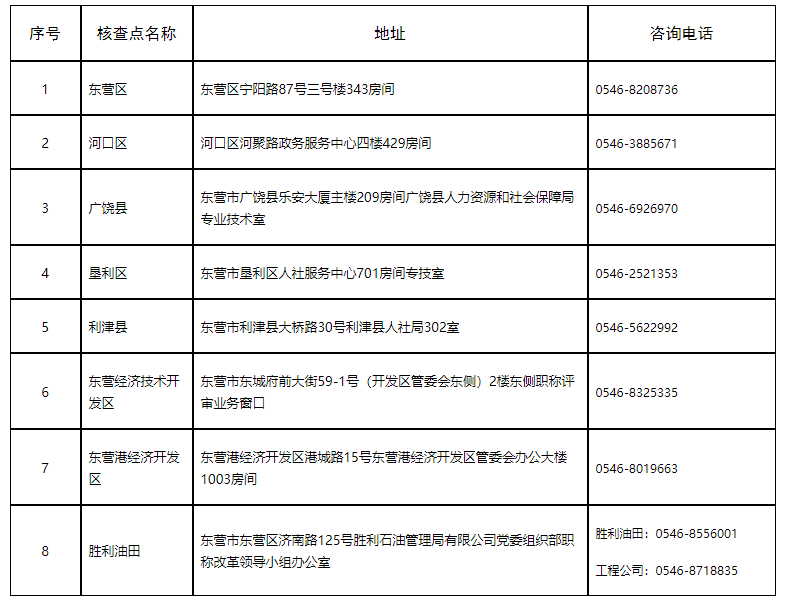 (四)資格核查工作由市人事考試機(jī)構(gòu)負(fù)責(zé)組織,全市核查時(shí)間統(tǒng)一定于3月13日——3月17日16:00(節(jié)假日除外)。為做好我市人事考試資格核查、復(fù)核工作,在全市設(shè)立8個(gè)核查點(diǎn)(見(jiàn)下表):