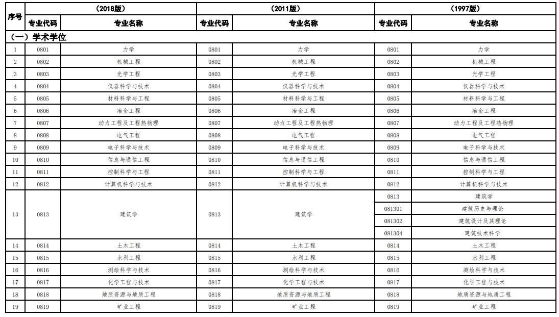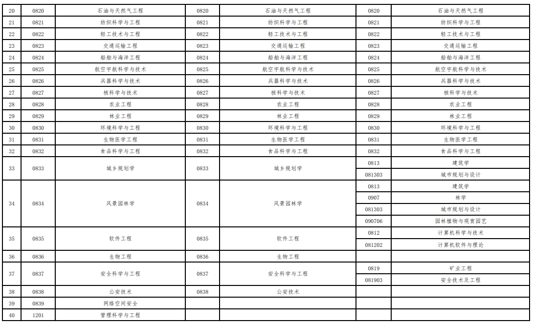 一級建造師資格考試(博、碩)專業(yè)對照表