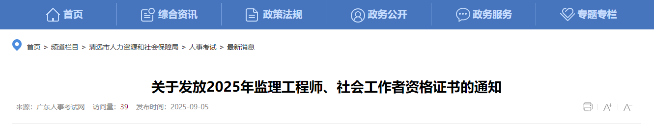 廣東清遠(yuǎn)市2025年監(jiān)理工程師資格證書(shū)發(fā)放通知