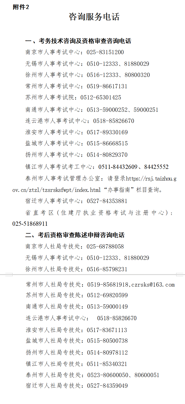 4.考后審查陳述申辯。審查對象依法享有陳述和申辯的權利。如對考后資格審查結(jié)果存在異議,可自公布審查結(jié)果起7個工作日內(nèi),依法向設區(qū)市相關主管部門進行陳述和申辯,主管部門復核后作出答復,聯(lián)系方式見《咨詢服務電話》(附件2)。