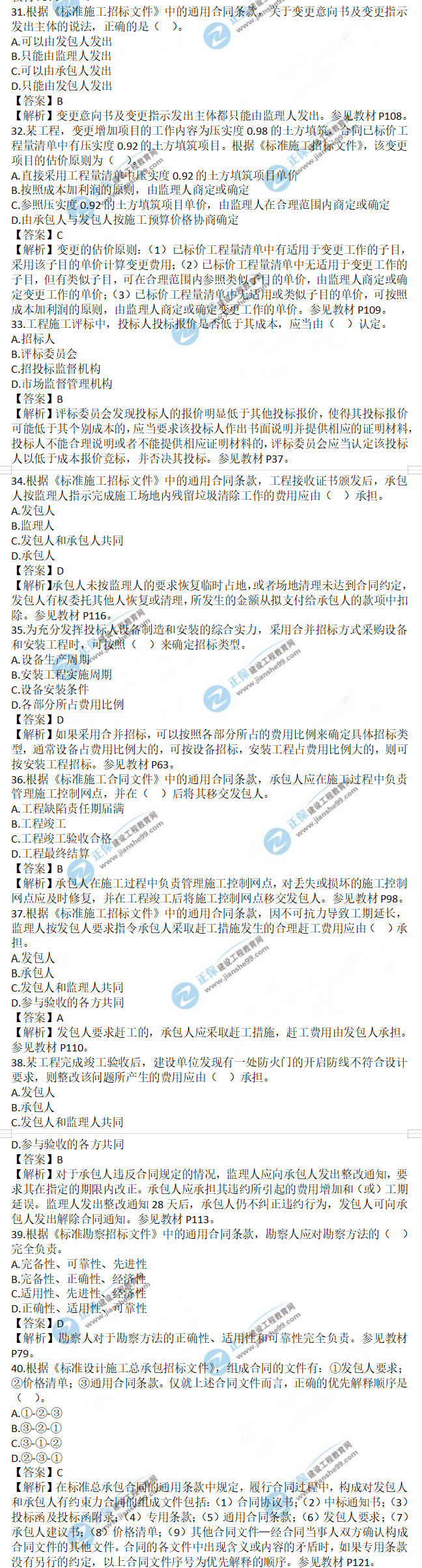 2021年監(jiān)理工程師合同管理試題及答案31-40題,建設(shè)工程教育網(wǎng)考后將會(huì)根據(jù)學(xué)員反饋進(jìn)行匯總,考試過(guò)后,廣大考生最關(guān)心的問(wèn)題莫過(guò)于2021年監(jiān)理工程師合同管理試題及答案31-40題了,網(wǎng)校會(huì)及時(shí)匯總2021年監(jiān)理工程師合同管理試題及答案分享給大家,并且做出答案解析,希望能為廣大監(jiān)理考生朋友帶來(lái)幫助。