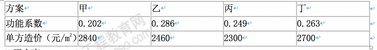 12.某項(xiàng)目應(yīng)用價(jià)值工程原理進(jìn)行方案擇優(yōu),各方案的功能系數(shù)和單方造價(jià)見下表,則最優(yōu)方案為( )。
