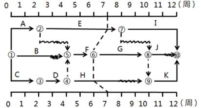 【解析】本題考查的是雙代號(hào)網(wǎng)絡(luò)圖的繪制。②、③存在無箭頭的連線;D、E工作箭線交叉處理有誤,應(yīng)采用過橋法和指向法。參見教材P38。