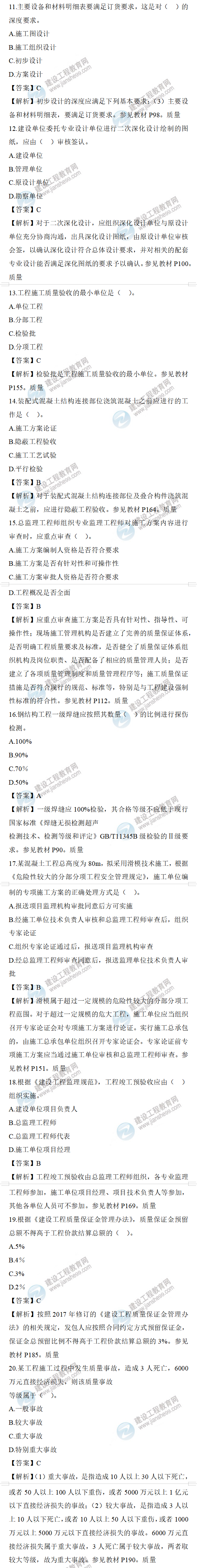 2022年監(jiān)理工程師目標(biāo)控制土建考試答案11-20題