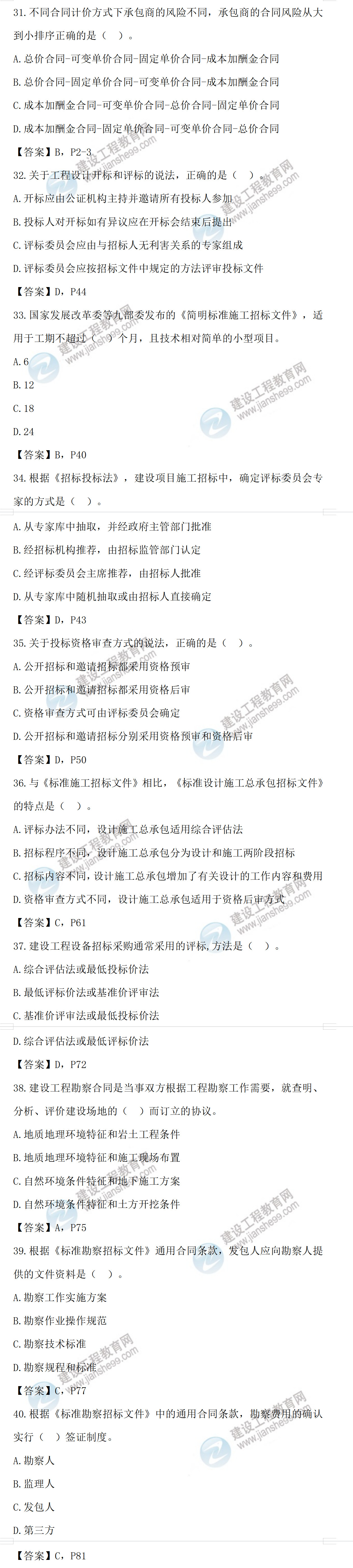 2022年監(jiān)理工程師合同管理考試及答案31-40題(補(bǔ)考)