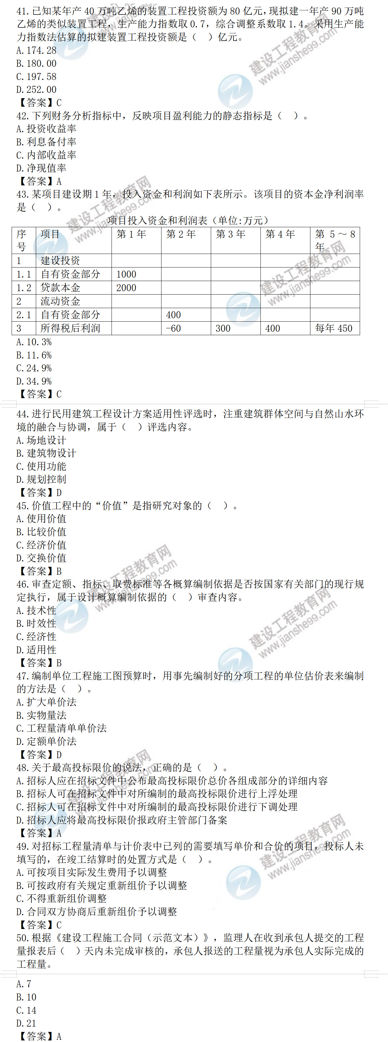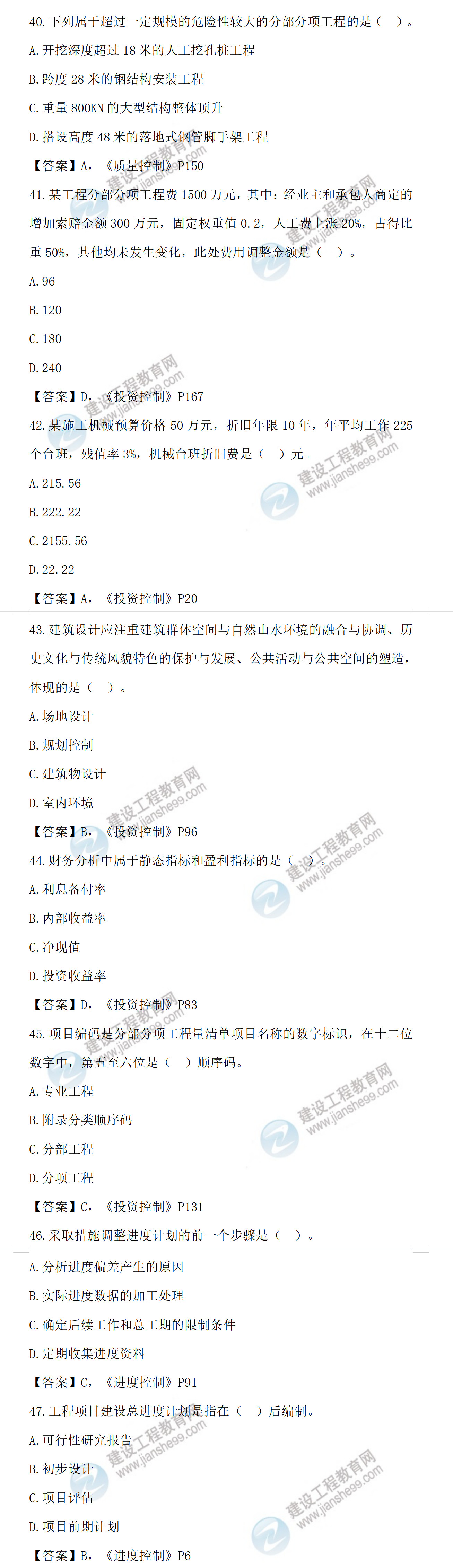 2022年監(jiān)理工程師目標(biāo)控制土建考試答案41-50題(補(bǔ)考)