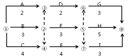 某工程網(wǎng)絡(luò)計(jì)劃如下圖所示(時(shí)間單位為天),圖中工作D的自由時(shí)差