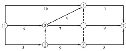 【答案解析】 本題考查的是雙代號網(wǎng)絡(luò)計劃。本題可用標號法快速找出關(guān)鍵線路,本題的關(guān)鍵線路有①→③→⑤→⑦、①→③→④→⑦、①→②→⑥→⑦三條。
