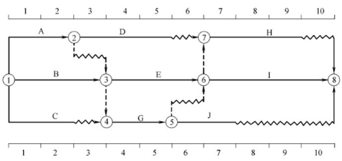 某工程雙代號(hào)時(shí)標(biāo)網(wǎng)絡(luò)計(jì)劃如下圖所示,其中工作C的總時(shí)差是( )。