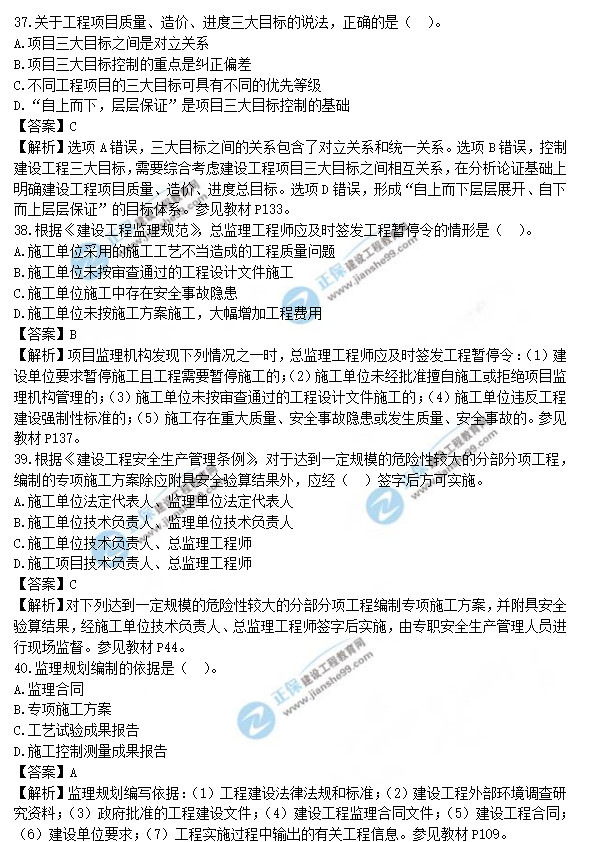 2021年監(jiān)理工程師理論和法規(guī)試題及答案31-40題