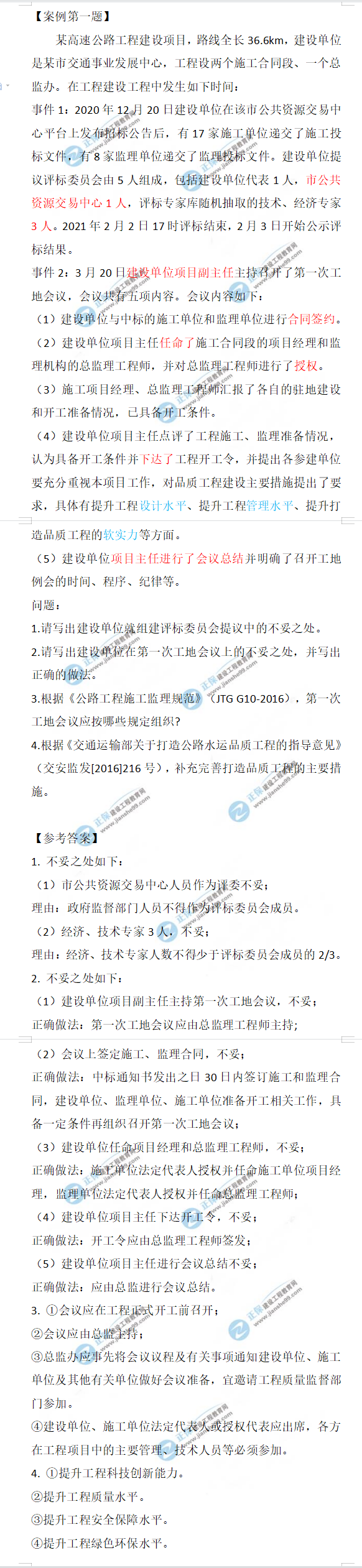 2021年監(jiān)理工程師交通案例試題及答案第一題