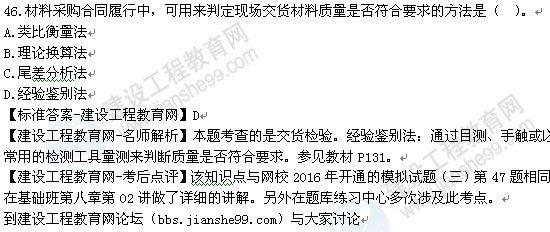 2016年監(jiān)理工程師《建設(shè)工程合同管理》答案及解析由老師整理而成,部分網(wǎng)站未經(jīng)許可擅自轉(zhuǎn)載、抄襲,造成內(nèi)容有所缺失或錯誤,請大家以建設(shè)工程教育網(wǎng)發(fā)布為準(zhǔn)!