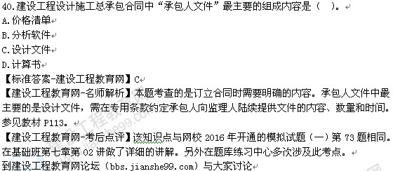 同時(shí),為方便廣大考生學(xué)習(xí)交流,我們也在論壇發(fā)布了最新的試題相關(guān)信息,歡迎大家登錄論壇溝通交流,點(diǎn)擊進(jìn)入2016年監(jiān)理工程師考試交流專區(qū),建設(shè)工程教育網(wǎng)預(yù)祝各位學(xué)員朋友們金榜題名,夢想成真!