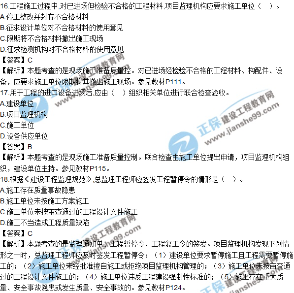 2018年監(jiān)理工程師考試于5月19日、20日舉行,考試過后,廣大考生最關(guān)心的問題莫過于“2018年監(jiān)理工程師《建設(shè)工程質(zhì)量、投資、進(jìn)度控制》試題及答案”了,建設(shè)工程教育網(wǎng)將會(huì)根據(jù)學(xué)員反饋,及時(shí)匯總2018監(jiān)理試題相關(guān)信息分享給大家,并且會(huì)及時(shí)做出答案解析,希望能為廣大監(jiān)理考生朋友帶來幫助。