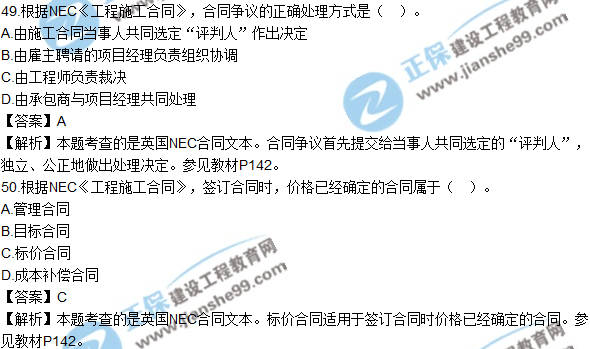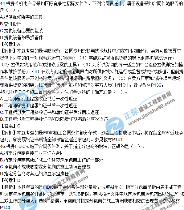 2018年監(jiān)理工程師《合同管理》試題及答案單選(41-50)