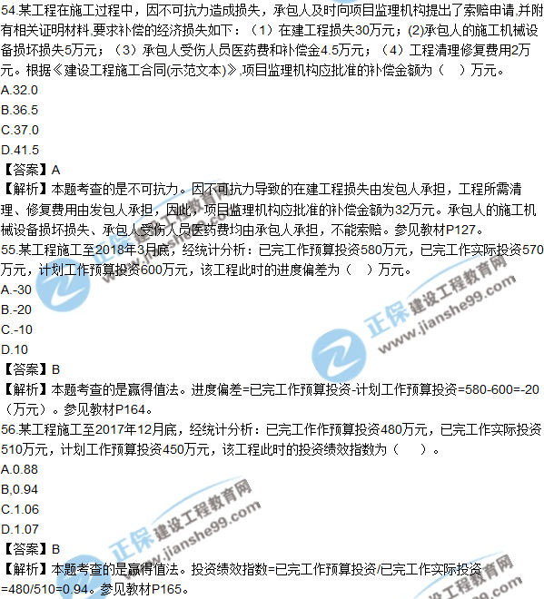 2018年監(jiān)理《建設(shè)工程質(zhì)量、投資、進(jìn)度控制》試題及答案單選(51-60)