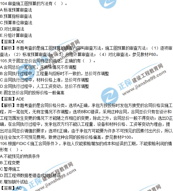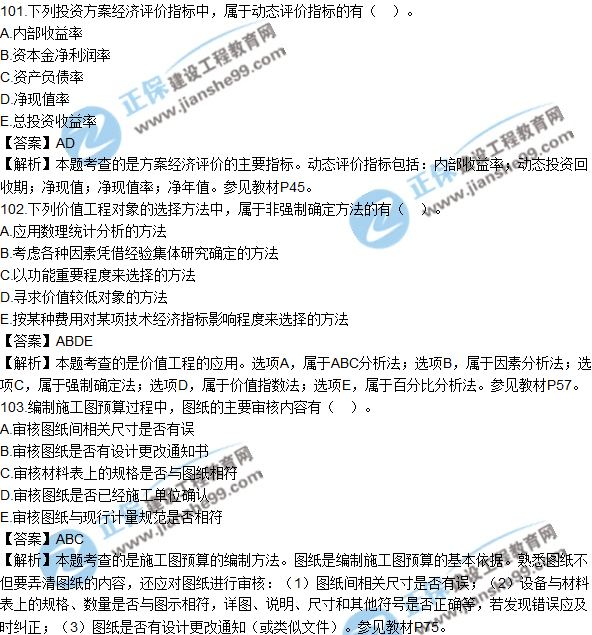 2018年監(jiān)理《建設(shè)工程質(zhì)量、投資、進度控制》試題及答案多選(101-110)