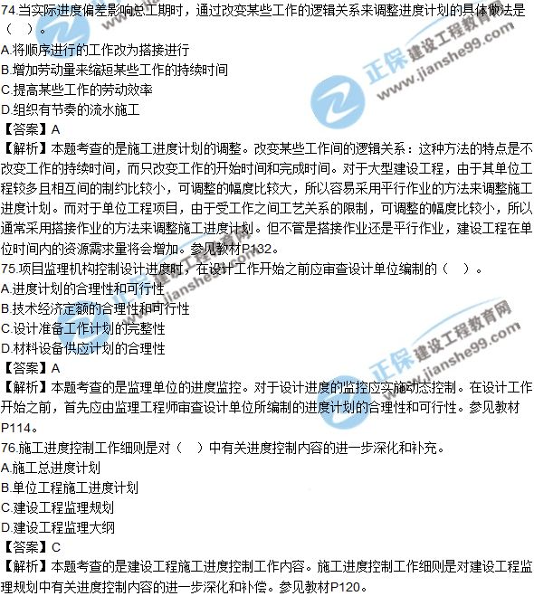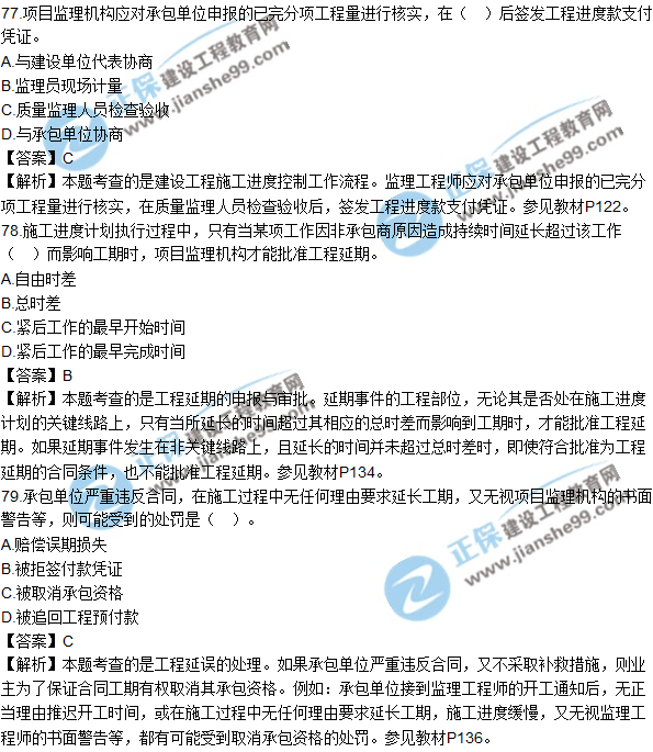 2018年監(jiān)理《建設(shè)工程質(zhì)量、投資、進(jìn)度控制》試題及答案單選(71-80)