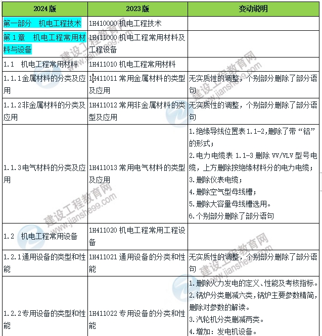 2024年一建《機電工程》教材變動對比及總結(jié)