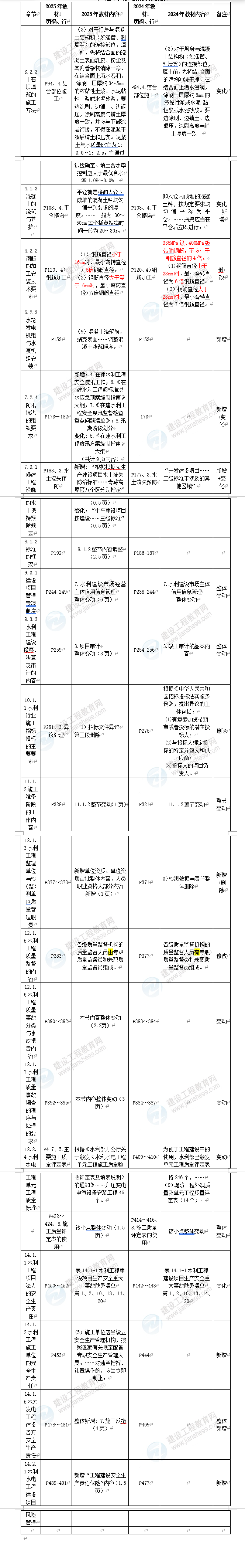 2025年一級建造師水利實務(wù)教材變動對比