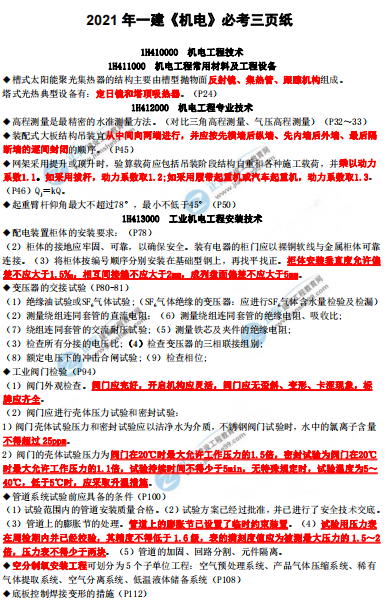 2021年一級建造師機電工程考前三頁紙