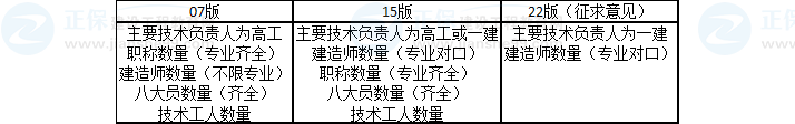 2.技術(shù)負責(zé)人必須具有本專業(yè)一建證書,取消了高級技術(shù)職稱的要求(改為工作年限要求)。