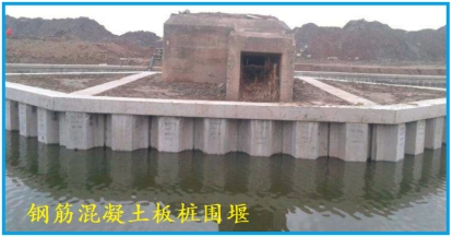 8.鋼筋混凝土板樁圍堰:利用鋼筋混凝土板樁打入到水中土體形成的擋水結(jié)構(gòu),鋼筋混凝土板樁不僅僅是單獨的板樁式構(gòu)件,而是指由鋼筋混凝土板樁構(gòu)件沉樁后形成的組合樁體,是一種易工廠化,裝配化的圍護(hù)結(jié)構(gòu)。