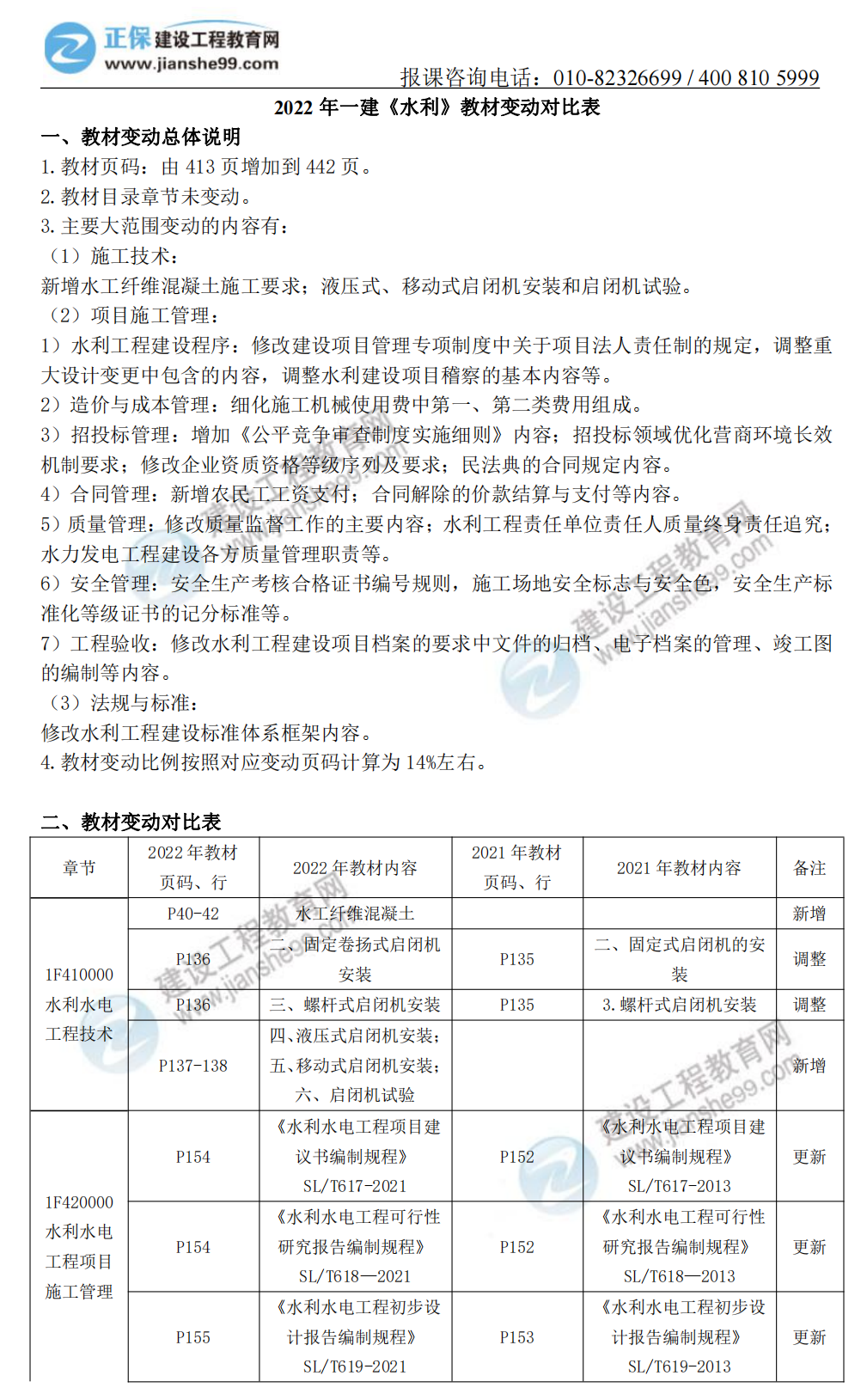 2022年一級建造師工程經(jīng)濟新教材變化大嗎?變動有哪些?建設(shè)工程教育網(wǎng)老師為考生們整理了《水利水電工程管理與實務(wù)》新舊教材變化對比解析,搶先看起來!