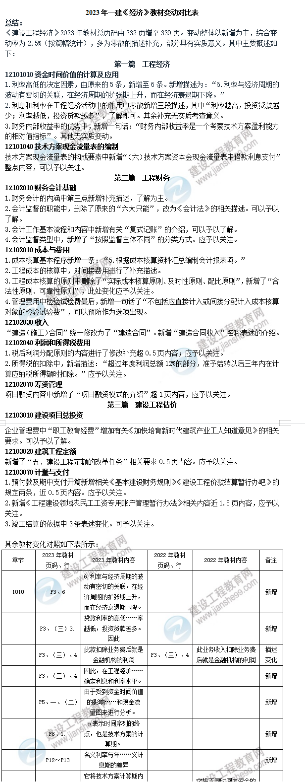 【整體變化2.5%】2023年一建《工程經(jīng)濟(jì)》新舊教材對比