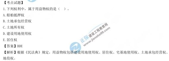 - · 一建《法規(guī)》知識(shí)點(diǎn)試題:土地所有權(quán)、建設(shè)用地使用權(quán)和地役權(quán)