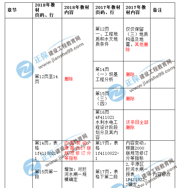 2018一級建造師《水利水電工程》新舊教材對比解析(一)