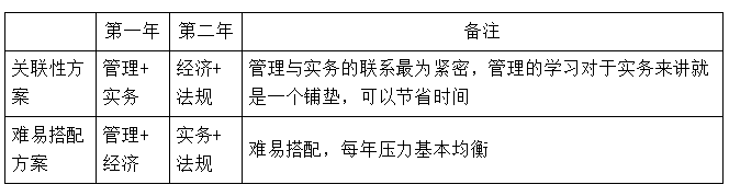 ■管理和實(shí)務(wù)組合最優(yōu),其次是管理和經(jīng)濟(jì)。由于管理與實(shí)務(wù)的關(guān)聯(lián)性最大,建議管理與實(shí)務(wù)同時(shí)考,或把管理放在實(shí)務(wù)之前考