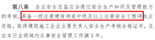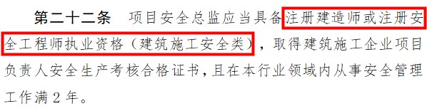 摘要:住建部發(fā)布《建筑施工企業(yè)、 工程項目安全生產(chǎn)管理機(jī)構(gòu)設(shè)置及安全生產(chǎn) 管理人員配備辦法(征求意見稿)》 ,文中提到“企業(yè)安全總監(jiān)應(yīng)當(dāng)通過安全生產(chǎn)知識及管理能力的考核,具備一級注冊建造師或中級及以上注冊安全工程師執(zhí)業(yè)資格”以及“項目安全總監(jiān)應(yīng)當(dāng)具備注冊建造師或注冊安全工程師執(zhí)業(yè)資格(建筑施工安全類)”。